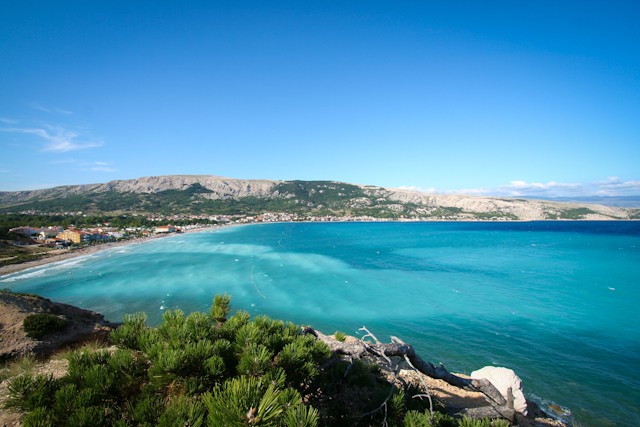 Smještena u pitomoj dolini, u zaljevu okružena vinogradima, maslinicima, brnistrom, sa slikovitom pozadinom krševite planine Velebita i otoka Prvića, koji kao da štite sa svih strana jedinstvenu šljunčanu plažu dugu 1800m, za koju s pravom kažu da je jedna od najljepših na Jadranu.