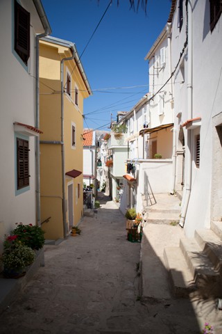 Smještena u pitomoj dolini, u zaljevu, okružena vinogradima, maslinicima, brnistrom, sa slikovitom pozadinom krševite planine Velebita i otočića Prvića, koji kao da štite sa svih strana jedinstvenu šljunčanu plažu dugu 1800 m, za koju s pravom kažu da je jedna od najljepših na Jadranu.