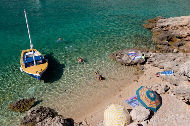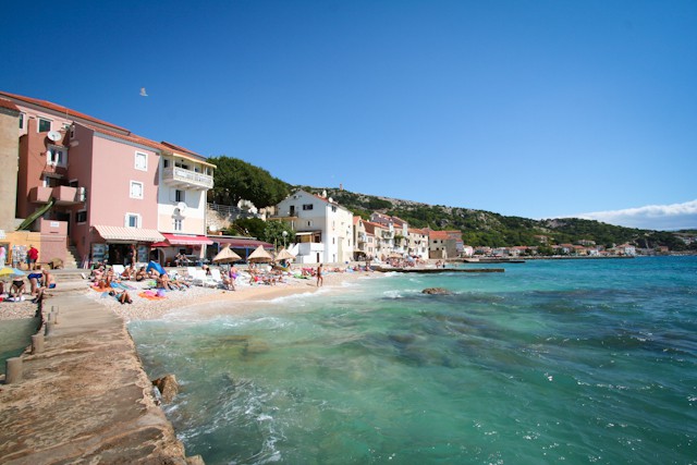 Smještena u pitomoj dolini, u zaljevu okružena vinogradima, maslinicima, brnistrom, sa slikovitom pozadinom krševite planine Velebita i otoka Prvića, koji kao da štite sa svih strana jedinstvenu šljunčanu plažu dugu 1800m, za koju s pravom kažu da je jedna od najljepših na Jadranu.