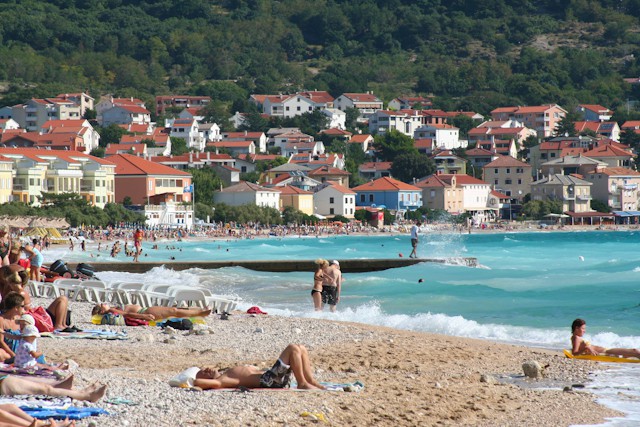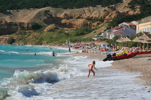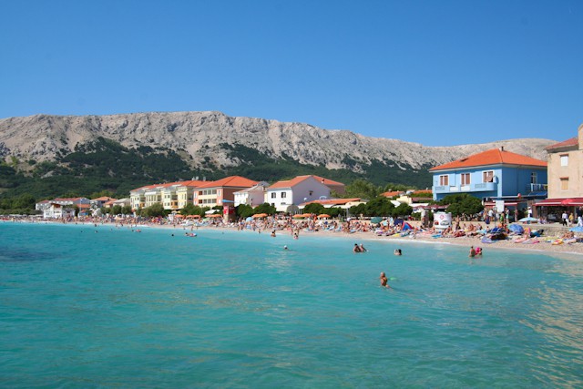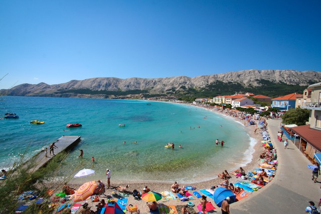 "Vela plaža" je prirodna šljunčana plaža, duga 1800 m, može primiti nekoliko tisuća kupača. Posebno je pogodna za djecu i neplivače. Na bašćanskoj "Veloj plaži" vijori se od 1999. godine i europska Plava zastava koja je i danas zaštitni znak Baške kao dokaz visoke kakvoće i standarda plaže.